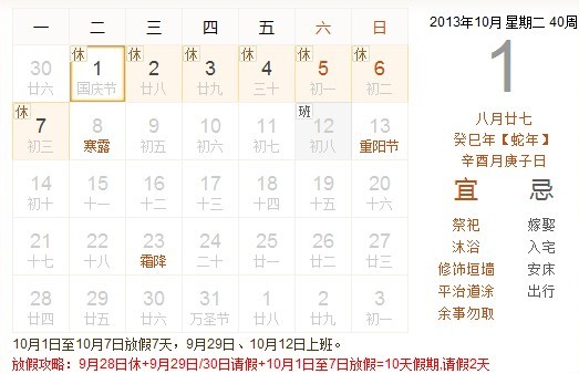 2013年國慶節放假詳細安排如下:【今年的安排特別亂,請仔細看】