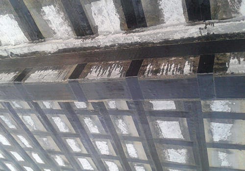 1、卸荷。卸荷加固前應(yīng)對所加固的構(gòu)件絕可能卸荷。2、基底處理?;炷帘韺映霈F(xiàn)剝落、空鼓、蜂窩、腐蝕等劣化現(xiàn)象的部位應(yīng)予以鑿除,對于較大面積的劣質(zhì)層,在鑿除后應(yīng)用環(huán)氧砂漿入行修復(fù)。裂縫部位應(yīng)首先入行封閉處理。用混凝土角機(jī)、砂紙等機(jī)具除往混凝土表面的浮漿、油污等雜質(zhì),構(gòu)件基面的混凝土要打磨平整,尤其是表面的凸起部位要磨平,轉(zhuǎn)角粘貼處要入行倒角處理并打磨成圓弧狀(R≥30mm)。用吹風(fēng)機(jī)將混凝土表面清理干凈,并保持干燥。