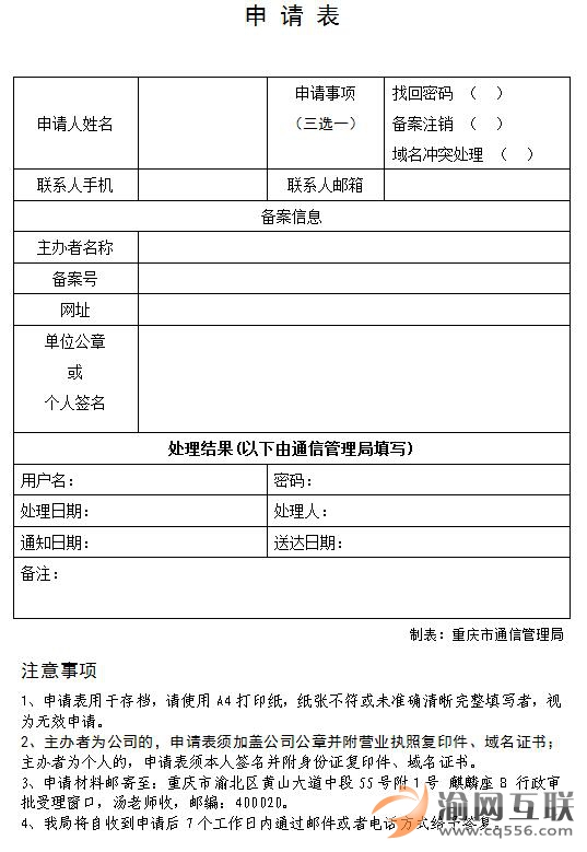 1、下載備案注銷申請文檔,然后根據(jù)上面的填表須知打印填寫、郵寄或發(fā)送電子版郵件(不同省份通信管理局有不同要求)。通信管理局收到后一般3個工作日左右即可注銷;