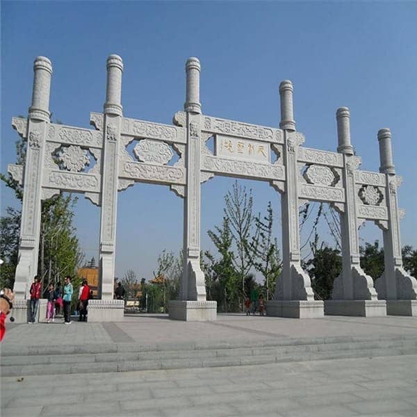 一般現在園林景看中選用的都是石牌樓,性能更好,更綠色環保,而且經久不衰,經歷風吹日曬也不會有所損壞。對于現代的園林景看牌坊來說更多的是裝飾性的作用,因為園林景看牌坊制作精美,大多是石雕為主,將各種圖案以浮雕、鏤雕、線雕、切割等多種工藝通過能工巧匠之手鋪現在園林景看牌坊上,增加了主體建筑的氣魄和精美,另外對于當地的園林景區也增色不少,起到很好的裝飾效果。