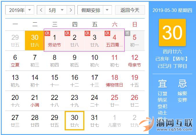 2019年五一放假時間安排