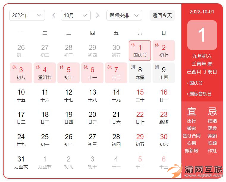 10月1日(星期六)國慶節(jié)【三倍工資日】