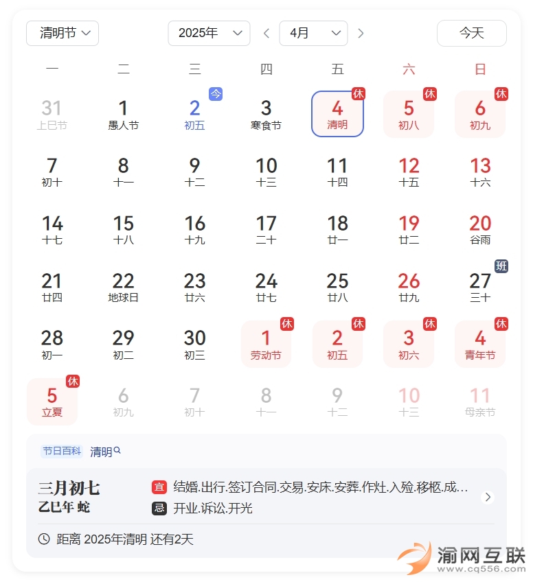 根據國務院辦公廳關于2025年部分節假日安排的通知:2025年4月4日(周五)至6日(周日)放假,共3天。