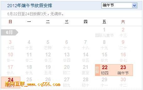 2012端午節放假安排
