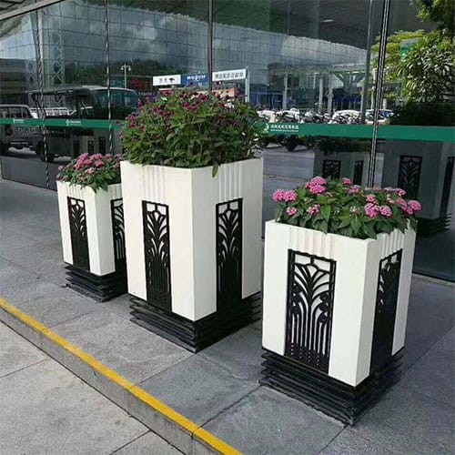 其他材質不做贅述。戶外綠化工程所用的花箱,長期經受風吹日曬,輕易受潮氧化,降低使用壽命。因此在選用花箱時要充分考慮其材質屬性,以及后期的維護成本。不同的用處,不同的裝飾效果,根據實際需求選擇對應花箱材質。??