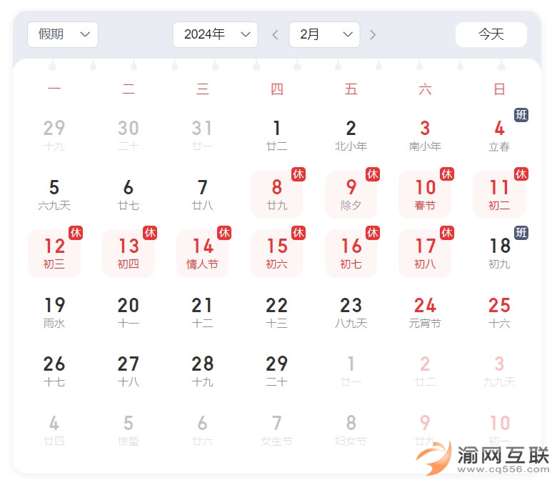 2024年2月8日 (星期四)中午至2月17日(星期六)),放假時間為10天。2月4日(星期天)、2月18日星期天為調休時間新疆公司正常上班。