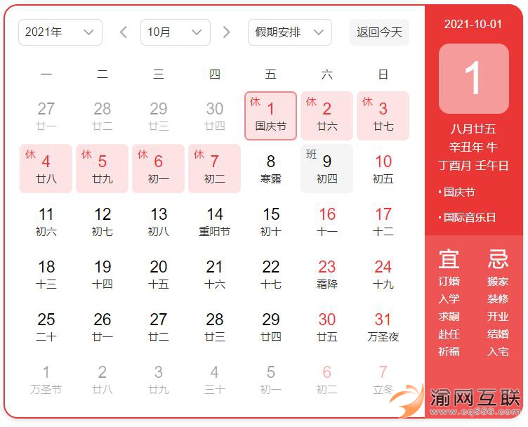2021年國(guó)慶假期從10月1日起至7日,放假調(diào)休共7天,9月26日(星期日)和10月9日(星期六)上班。